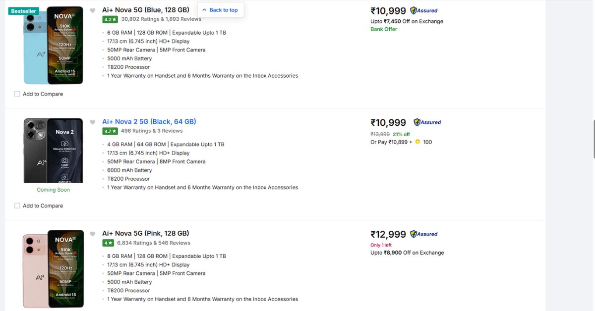 Flipkart এ বিভিন্ন Variant- এর দাম জানা গেছে